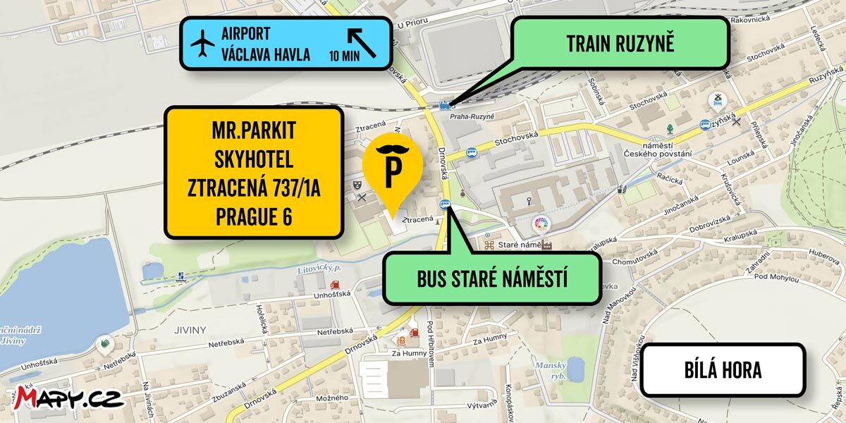 Suchen Sie einen Parkplatz in der Nähe des Flughafens Václav Havel oder möchten Sie nicht in die Innenstadt fahren und Zeit im Stau verbringen? Parken Sie schnell und einfach beim Hotel Sky in der Straße Ztracená 737/1a.