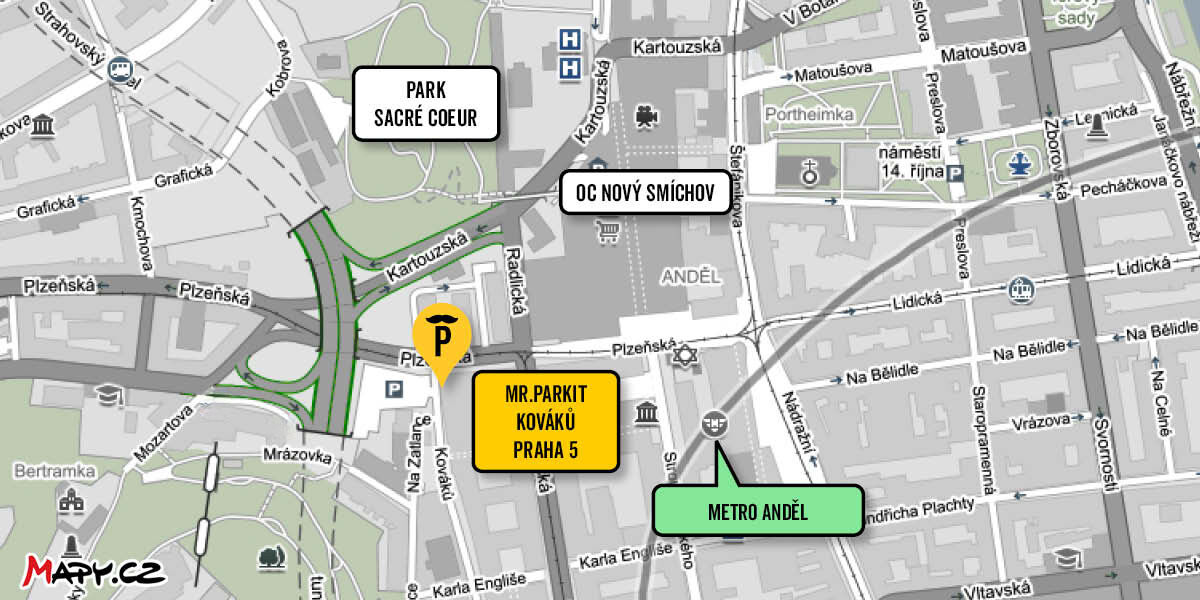 Parken Sie auf dem Parkplatz Kováků im Prager Stadtteil Smíchov und ersparen Sie sich den Stress, ins überfüllte Stadtzentrum zu fahren. Es handelt sich um einen eingezäunten Außenparkplatz mit Schranken an der Einfahrt, sodass Ihr Fahrzeug sicher abgestellt ist.