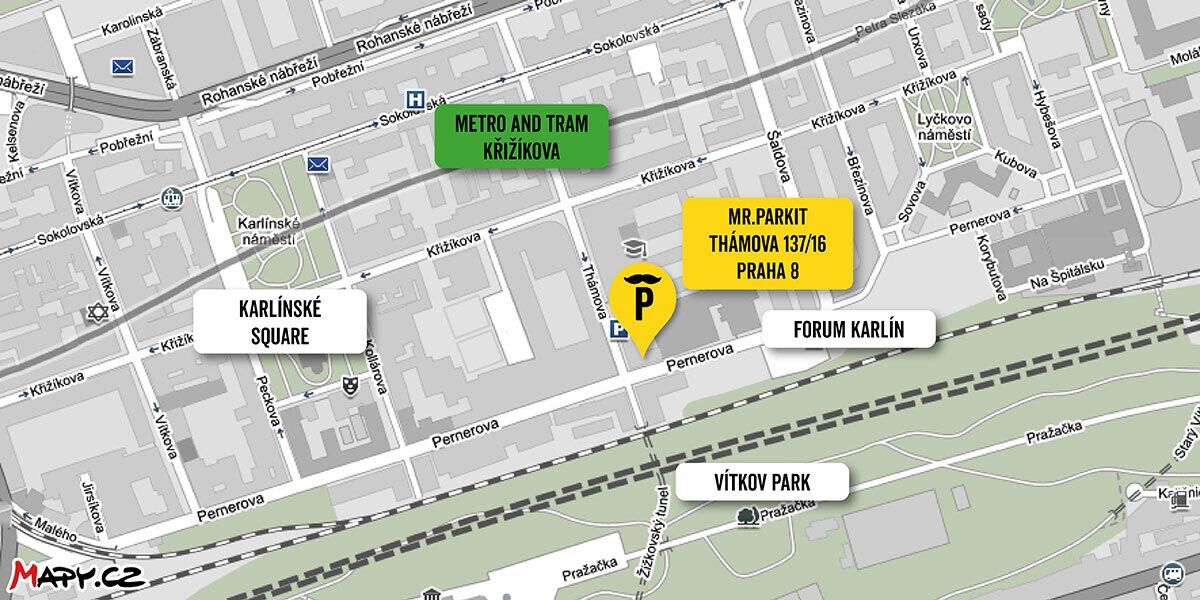 Metro and Tram station Krizikova is only 120 m faraway. This garage offers great parking option for your business meeting or while visiting cultural events at Forum Karlín.